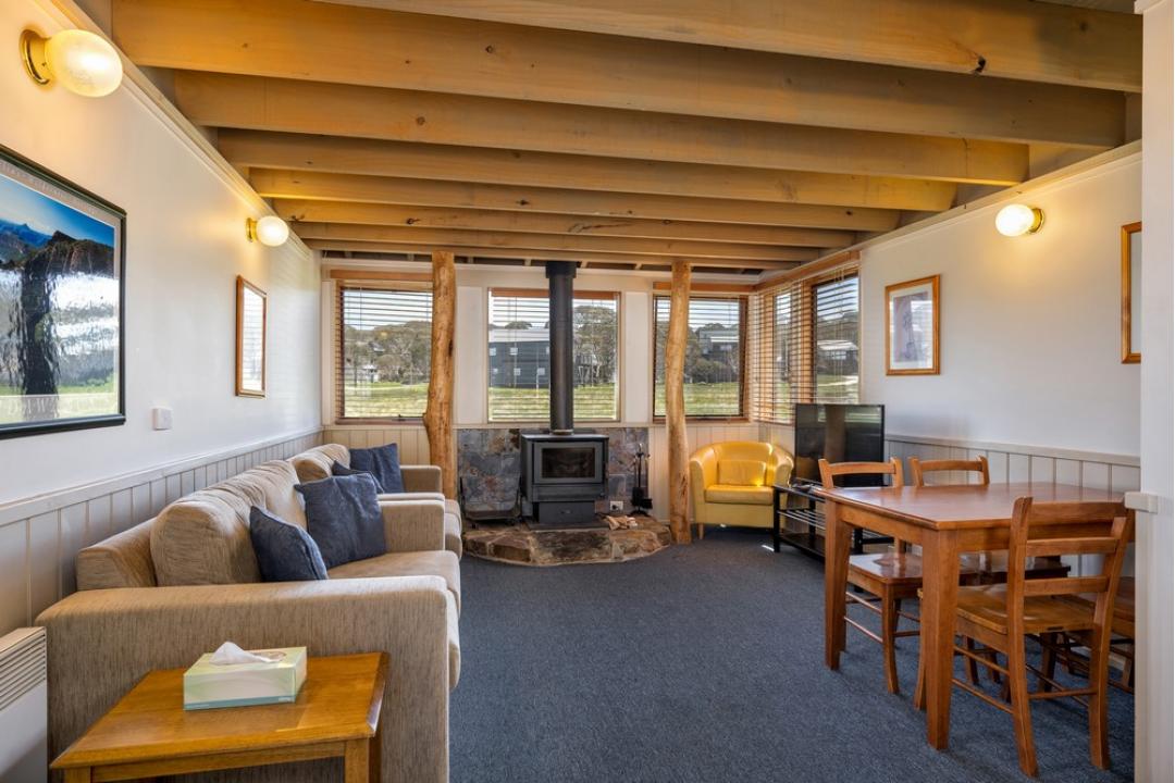 Tucked away in the heart of Dinner Plain, this charming alpine retreat captures the warmth and character of one of the area's original properties. A slow-combustion fireplace set against a rustic stone hearth creates the perfect cozy atmosphere, while the private balcony offers a peaceful spot to soak in views of the nearby Alpine National Park.