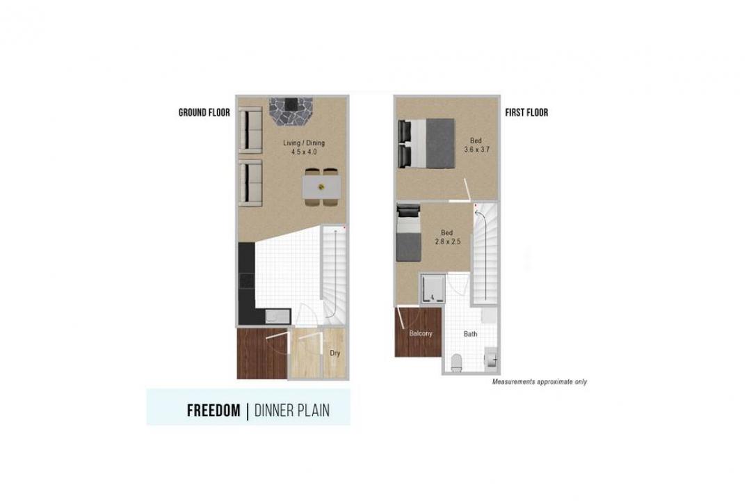 Downstairs, the open-plan layout brings together the kitchen, dining, and lounge areas, making it easy to relax or entertain after a day in the mountains. A dedicated drying room on the ground floor ensures your gear is ready for the next adventure.
